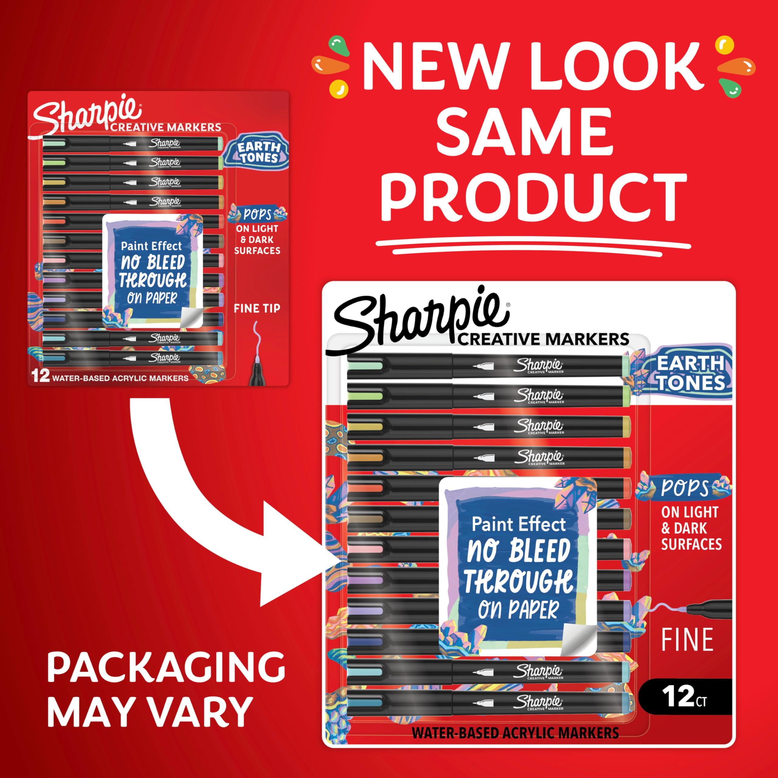 Sharpie Creative Markers, Earth Tones, Water-Based Acrylic Paint Markers, Fine Tip, 12 Count
